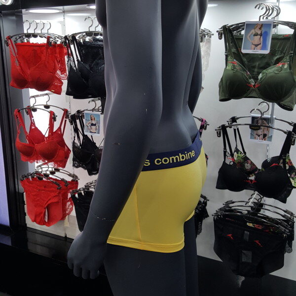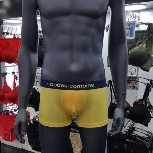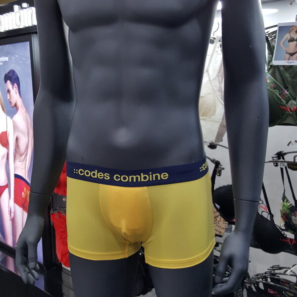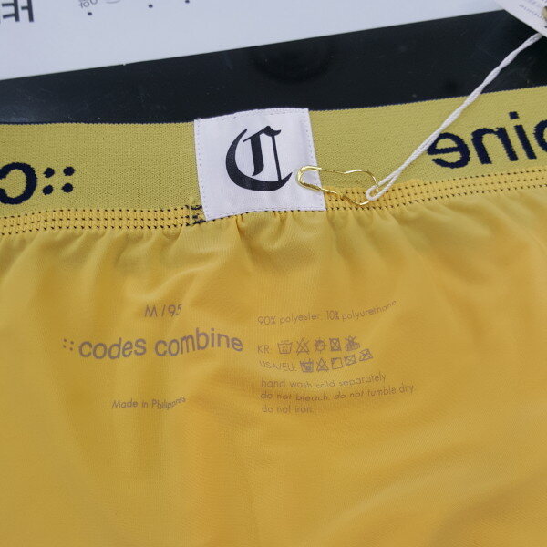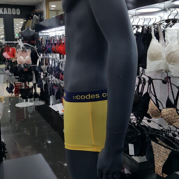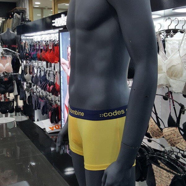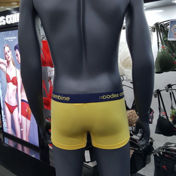 노랑 색상의 베이지한 스타일에 브랜드 로고 아웃밴드로 포인트 된 남성 드로즈입니다. 편안한 착용감을 주는 제품입니다.