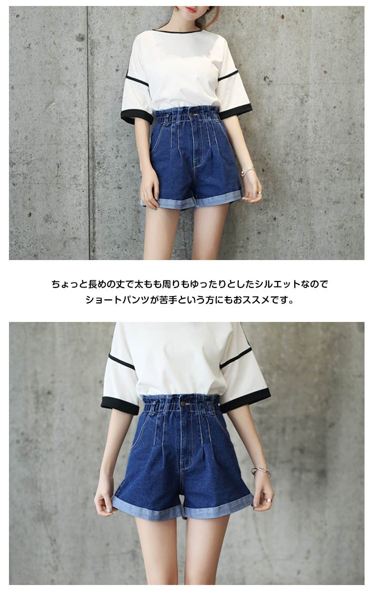 | ゆったりシルエットのきれいめデニムショートパンツ。ちょっと長めの丈で太もも周りもゆったりとしたシルエットなので ショートパンツが苦手という方にもおススメです。シンプルなデザインだからこそ細かい部分にまでこだわった一枚です。 ウェストゴムになっているので、着やすさも追及しています。シンプルトップスと合わせればおしゃれコーデが簡単に完成できちゃう。 | |