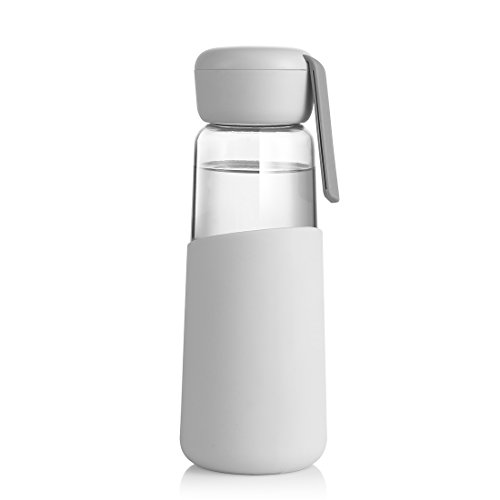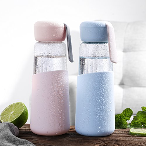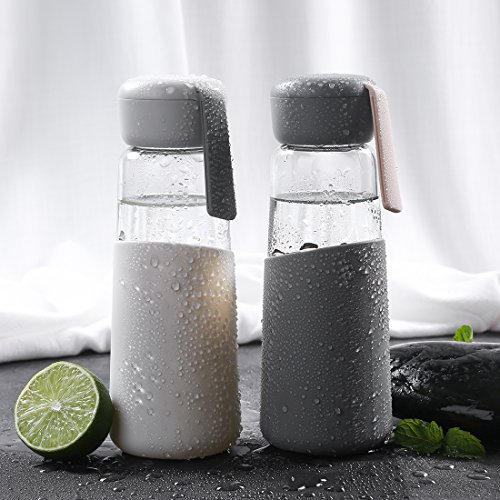 PERFECT FOR ALL KINDS OF ACTIVITIES - Suitable indoors and outdoors. These glass beverage bottles are convenient to use at the office, gym, or even at home. Or bring them with you when you go hiking, camping, jogging, traveling and more. Perfect for people on the go. Just easily clip the loop cap to your bag or backpack. Water-tight and leak-proof lid prevents messy spills.