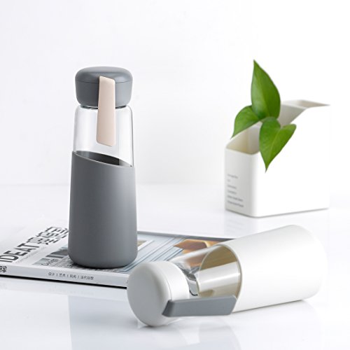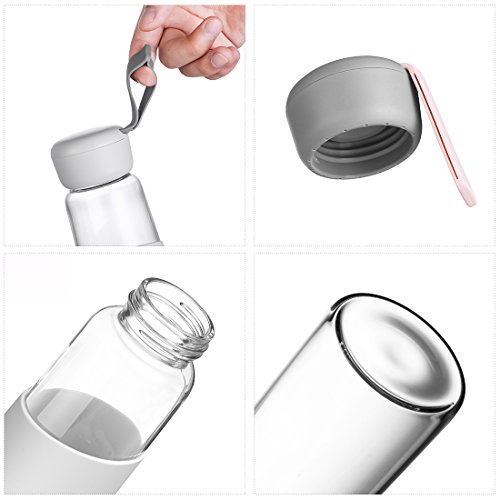 TOP QUALITY AND ELEGANT DESIGN: Made from thick, high quality Pyrex glass which is lead, cadmium, BPA and phthalates free, these classy glass bottles are ideal for keeping water, drinks, juices, brew, coffee, tea, kefir, fermented drinks etc. ready to go anytime, whether at home or on travel. Each bottle comes with a leak proof, smooth,round and cute designed cap with a food grade silicone O ring for an air tight, water tight seal no matter how you place the bottle.