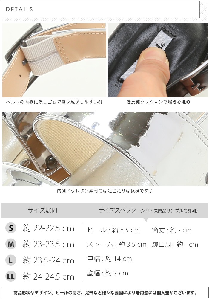 | サイズ | Sサイズ(22.0~22.5cm) Mサイズ(23.0~23.5cm) Lサイズ(23.5~24.0cm) LLサイズ(24.0~24.5cm) |
