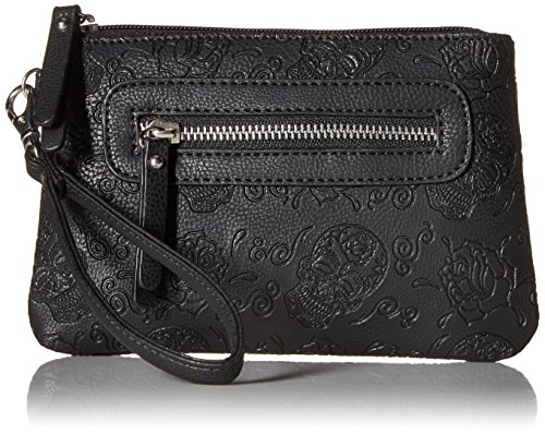 -. Brand : GG Rose by Rock Rebel -. Color : Black -. Department : womens -. EAN : 0731882425888 -. Feature : Perfect size for id, keys & lip gloss! / 8" x 5.5" x .75" -. ProductGroup : Shoes -. ProductTypeName : HANDBAG -. Title : GG Rose by Rock Rebel Sugar Skulls Mini Clutch Wristlet in Black -. UPC : 731882425888