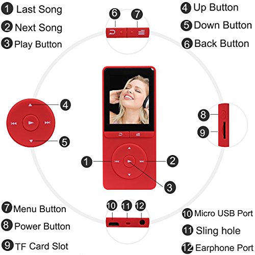 EIN KNOPF ZUM BILDSCHIRM SPERREN UND TOUCH-TASTE: Es ist nicht schon wenn die Schnittstelle geandert wird oder die Songs von selbst gestoppt werden, wenn versehentlich die falsche Taste gedruckt wird. Eine Lockscreen-Taste lost das problem. Durch den Touch-Taste lasst sich der MP3-Player leichter steuern