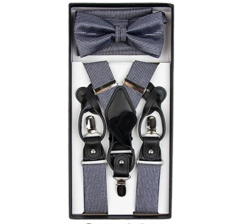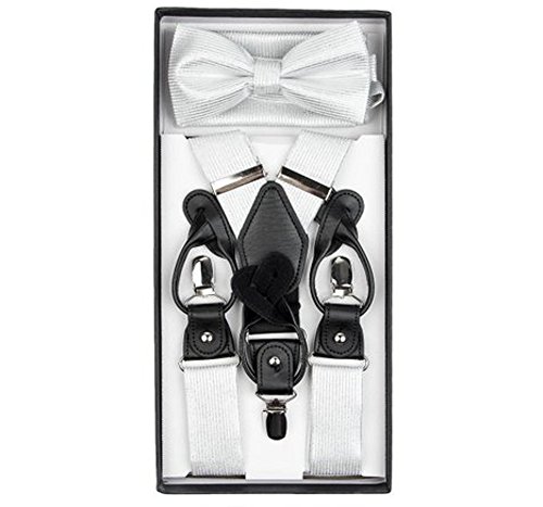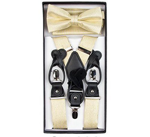 Binding : Apparel Product Description Men's Paisley Lame Design 3 PC Clip-on Suspenders, Bow Tie and Pocket Square Set Suspender Straps width are approximately: 1 3/8 inches (3.5cm) and Classic Y-shape suspenders are a unique and stylish fashion accessory Suspenders 6 Button holes attach to buttons (included) on your pants, trousers, or other clothing.Three Metal Clips allow for adjustable length Bow Tie is Pre-Tied Dimensions are 5.25"L x 2.5"H Pocket Square measures 10" x 10" 0