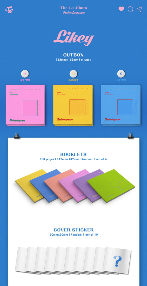 韓国音楽 TWICE(トゥワイス) - 1集 「TWICETAGRAM」 (バージョン3種の中1種選択/CD+ブックレット108P+カバーステッカー1種+フォトカード1種)+ポスター筒
