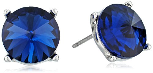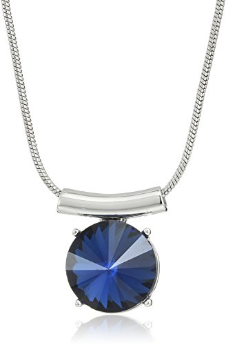 silver tone pendant necklace with blue stone and matching blue earring stud set