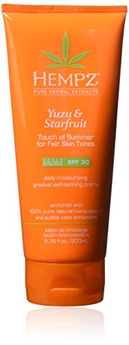 Hempz Yuzu & Starfruit Touch of Summer Moisturizing Gradual Self-Tanning Creme with SPF 30 for Fair Skin Tones, 6.76 Ounce