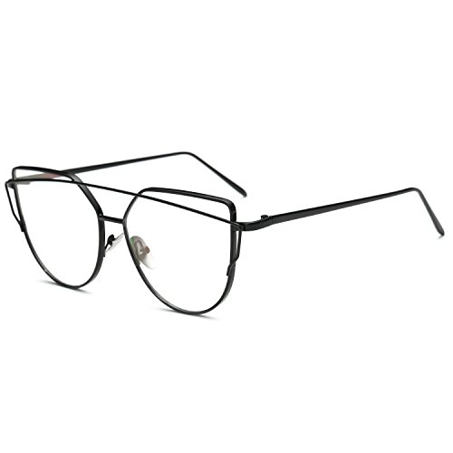 Clear Lens Cat Eye Sunglasses Large Oversized - Transparent Lens Cat Eye Sunglasses | Cat Eyes Sunglasses | Women Cat Eye Sunglasses Mirrored Lenses Fashion Womens Sunglasses (Black, Clear)