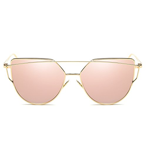 Cat Eye Sunglasses Oversized Cat Eye Sunglasses | Cat Eyes Sunglasses | Women Cat Eye Sunglasses Mirrored Lenses Fashion Metal Frame Women Sunglasses – Gold / Rose Gold