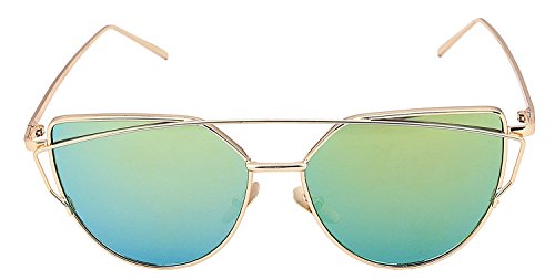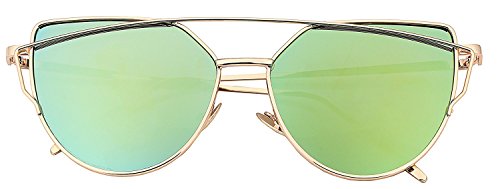 Cat Eye Sunglasses Large Oversized - Cat Eye Sunglasses | Cat Eyes Sunglasses | Women Cat Eye Sunglasses Mirrored Lenses Fashion Metal Frame Womens Sunglasses (Gold, Green)