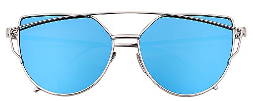 Cat Eye Sunglasses Large Oversized - Cat Eye Sunglasses | Cat Eyes Sunglasses | Women Cat Eye Sunglasses Mirrored Lenses Fashion Metal Frame Womens Sunglasses (Grey, Blue)
