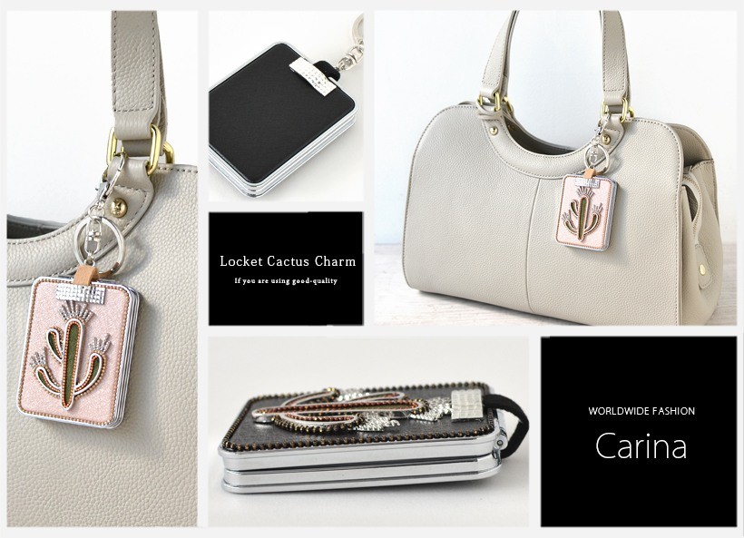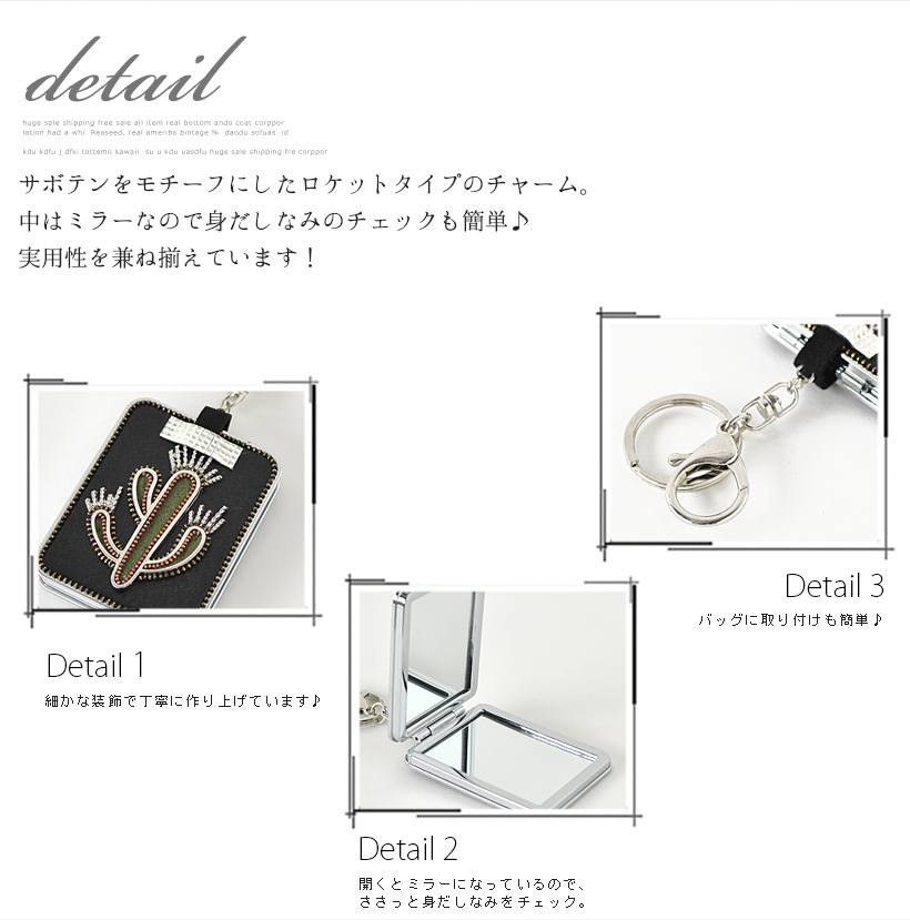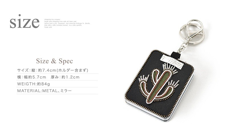 開くと二面の鏡が付いたバッグチャームキーホルダー。二面の一つは拡大鏡になっていて、化粧直しなど急に必要になっても便利なアイテム!ホルダーは使い分けできる2種類付き!●SIZE:縦:約7.4cm(ホルダー含まず) 横:幅約5.7cm 厚み:約1.2cm●重さ:約84g●素材:METAL、ミラー