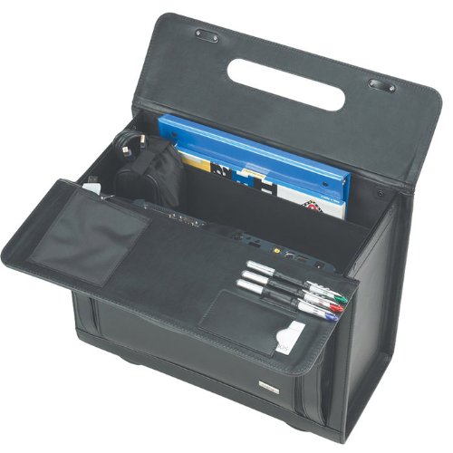 - Feature : Padded compartment protects laptops up to 16-Inch and a file pocket / Front zip-down organizer section / Dual combination locks / Sturdy carry handles with hidden telescoping handle system / Leather body