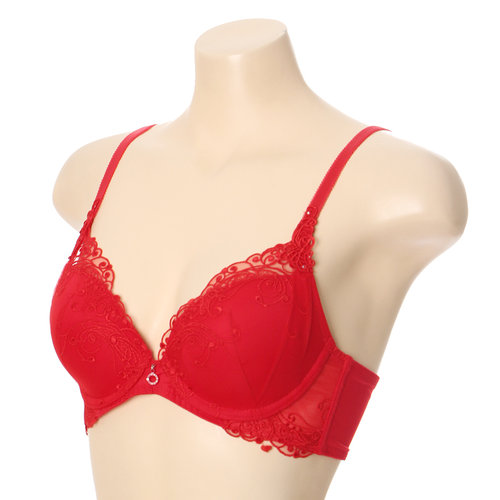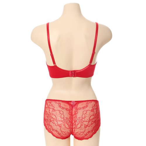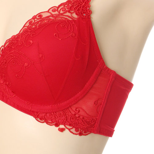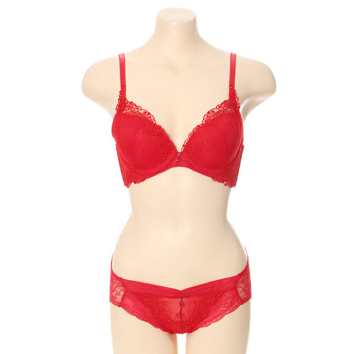 강렬한 레드컬러에 입체감있는 레이스로 포인트를 준 브래지어 입니다.
