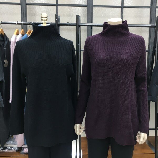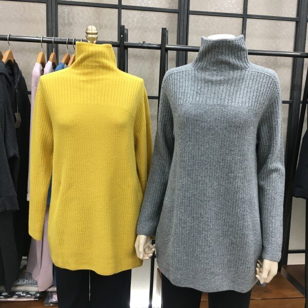 요즘 나온 니트제품들중 디피했을때 제일 핏 라인이 이뻤던 니트로 캐시미어가 함유된 부드러운 원사, 예쁜 핏, 가벼운 착용감 삼박자를 모두 갖춘 예쁜 퐁라니트랍니다 :D 적당히 길게 올라오는 폴라넥으로 기본으로 입기 좋은 베이직한 라인에 소매가 살짝 길게나와 팔뚝라인 군살을 없애주며 찬바람 불면 너무 따뜻하고 활동성도 불편하지 않았어요 ! 부드러운 원사와 후가공처리가 잘처리되서 착용감이 정말 부드럽고 가벼워요! 세로줄지느낌과 요 제품 밑단이 자연스레 여유있게 퍼지는 라인이라 날씬해 보인답니다! 개인적으로 컬러감도 소재도 너무너무 좋아서 고급스러움이 묻어나는 아이에요 . 군더더기 없는 디자인이라 컬러별로 하나쯤 있으면 팬츠, 스커트에 두루두루 입기 좋은 아이템이라 추천드려요 ♡ 총장길이는 55사이즈 기준으로 73.5cm 입니다.