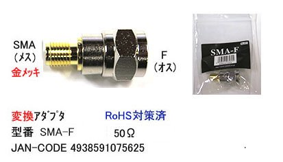 ■ Manufacturer / product model number: SAM-F made by CAMON ■ Specifications: SMA (female) ⇔ antenna (F type male) conversion adapter ■ Packing form: Simple packing with plastic bag