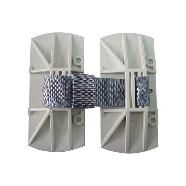 ●ベルトの両端に取り付けられた接着パッド付きベースの一方をキャビネット天板に、もう一方を壁面に接着固定して使用します。