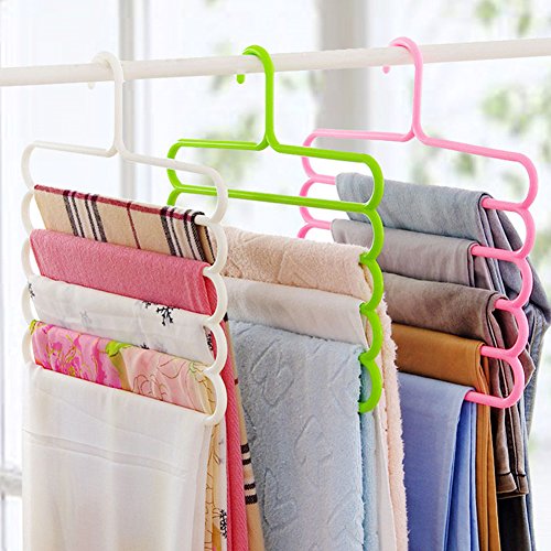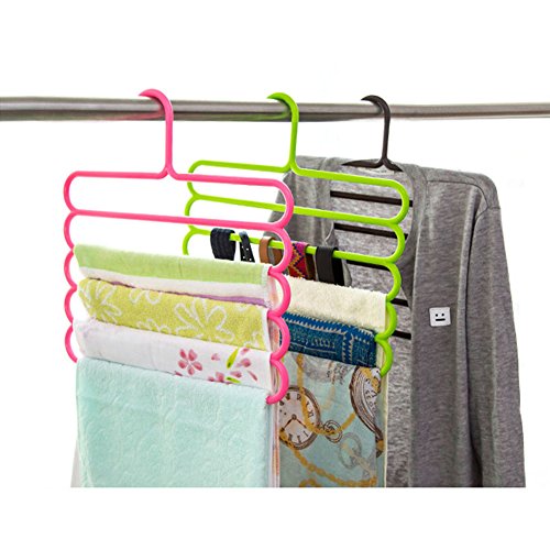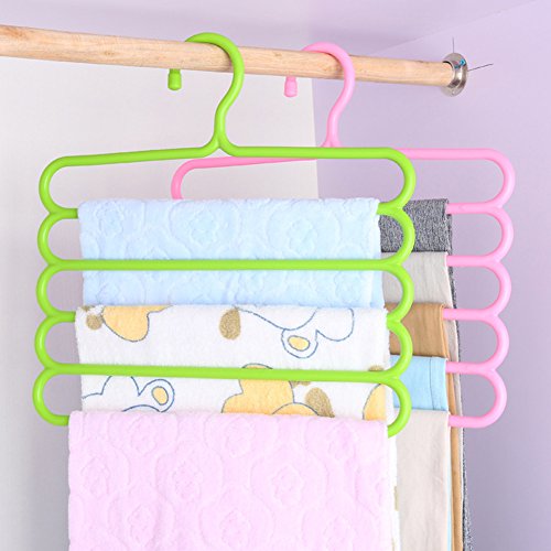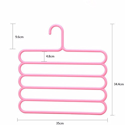 -. Feature : Material: plastic Size:13.7' *13.6' Weight:200g Color:white,pink,green,blue,brown / Make of high quality PP Plastic material, could use long time.5 Layers Hanger,A Hanger is Equivalent to Five / Ideal for Family Economical Storage Indoor Clothing Hangers,Give you more convenience to hang your Pants Clothes and save space / The unique open end design allows you to hang and remove slacks quickly and efficiently. / Used For clothes, towel, scarf, trousers, slacks, pants, ties, shirts, blouses, sweat, pants, etc