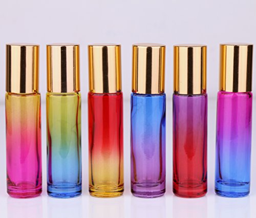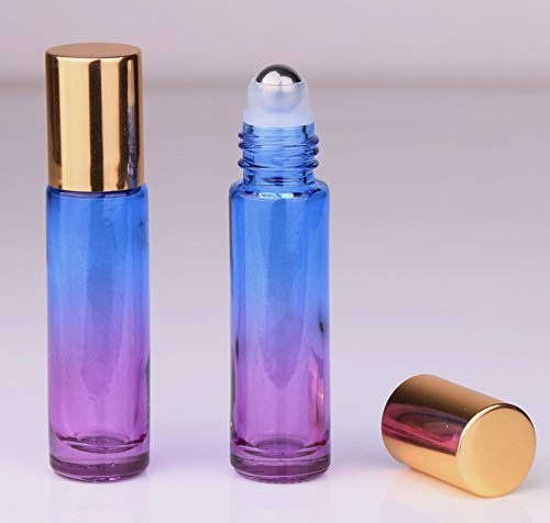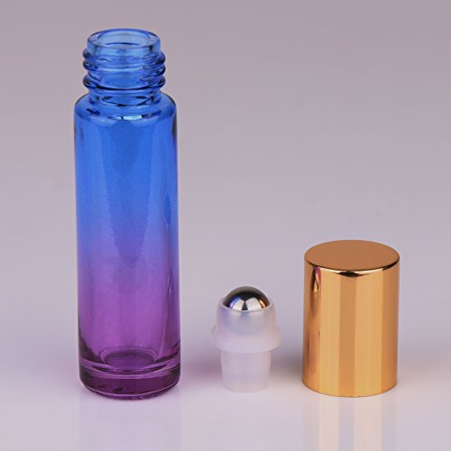 MaxMau 24 Packs of 10ml THICK Glass Roller Bottles Roll on Bottle Big Stainless Roller Ball Gradually Changing Color Essential Oils