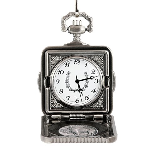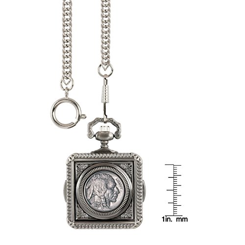 Studio : UPM Global, LLC Publisher : UPM Global, LLC Binding : Watch Product Description This distinctive pocket watch has been beautifully crafted with the look of yesteryear. The front of the engraved square case houses the obverse of a genuine U.S. coin. The Buffalo Nickel was minted from 1913 to 1938 and even today remains a nostalgic favorite. Artist James Earle Fraser used a composite American Indian profile to create the noble obverse, and depicted docile bison Black Diamond, famous denizen of the Central Park Zoo, on the reverse. Open the watch, and the coin's beautiful reverse design is visible inside the front cover. The face of the watch adds to its look of antiquity, but its quality quartz movement is strictly state-of-the-art. Includes a one-year warranty along with a Certificate of Authenticity. 0