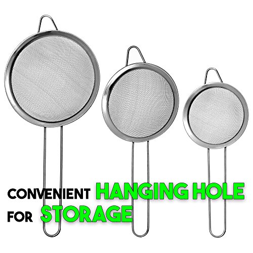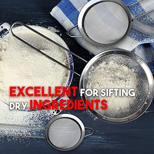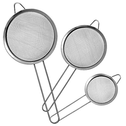 Stainless steel Fine Mesh strainer- Set of 3-Food Strainers Perfect for Strain, Drain and Rinse Vegetables, quinoa & Tea