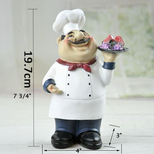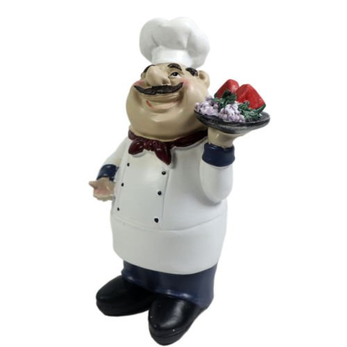 KiaoTime Italian Chef Figurines Kitchen Decor Cooking Chef with Fruit Figurine Counter Top Welcome Chef Statue Collectible Figurine