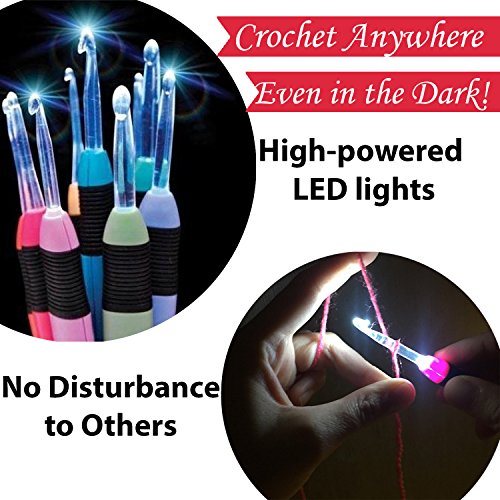 - 🌺 CROCHET ANYWHERE, ANYTIME - With these amazing Led Lighted Crochet Hooks, you can crochet effortlessly and see clearly with even the darkest yarn. You’ll never have to stop or slow down again because of bad light or dark yarn.