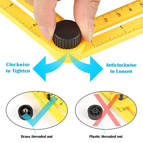 - ABS PLASTIC RULER & BRASS THREADED NUTS, PORTABLE SIZE – This angle ruler is made of strong ABS material with BRASS threaded nuts, and the ruler weight is 2.7 oz, the folded size is L 11.82*W 1.97*H 0.79 inch, it is very convenient to take it anywhere