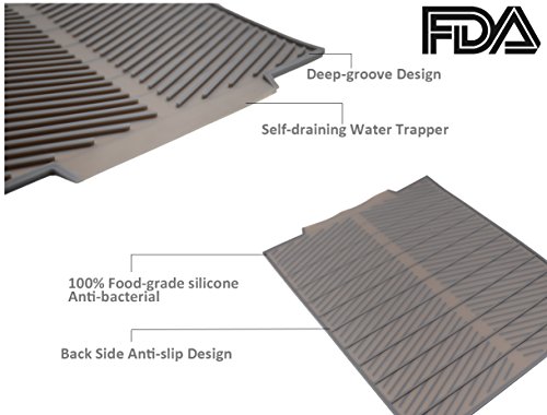 43×33CM Silicone Dish Drying Mat by ULee, Gray