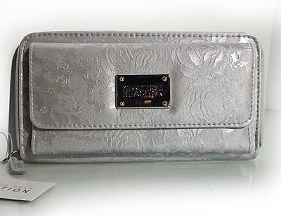 -. Feature : Brand:Kenneth Cole Reaction, Material:Faux Leather / Style:Clutch, Features:Organizer / Color:Silver, Theme:Floral