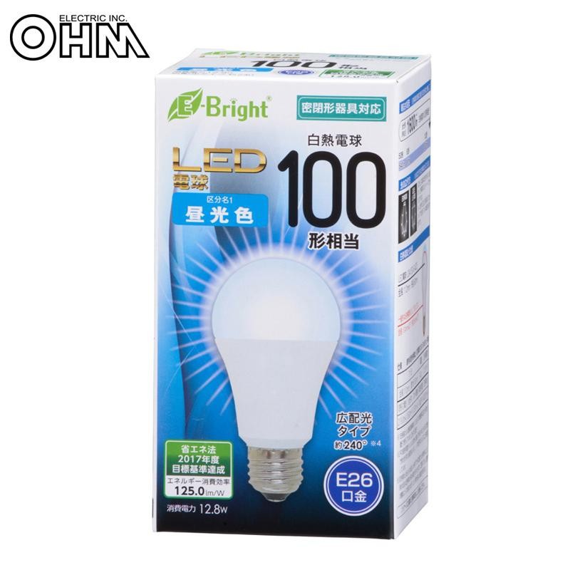 白熱電球100形相当の明るさ。光色は昼光色で屋内専用です。密閉形器具にも対応します。