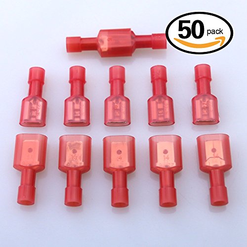 Glarks 50pcs 22-16 Gauge Fully Insulated Female Male Spade Nylon Quick Disconnect Electrical Insulated Crimp Terminals Connectors Assortment Kit