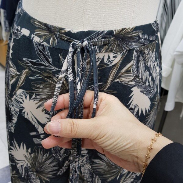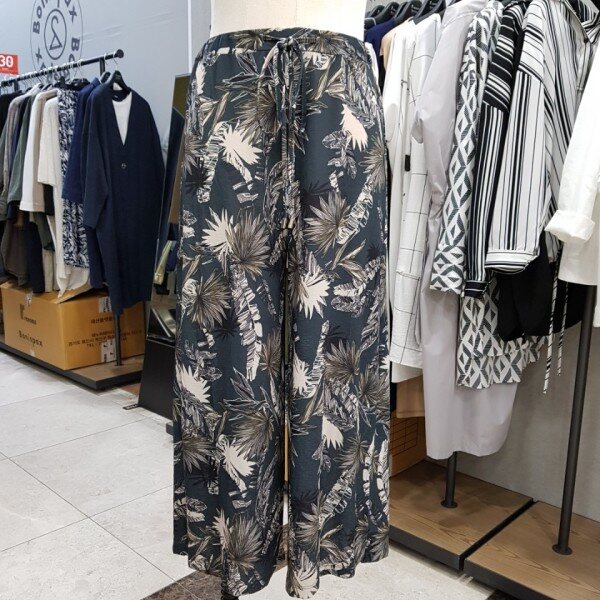 프린트무늬가 시원스럽고 세련된 옆트임 통바지 추천합니다.허리밴딩에 스트링으로 조절해서 입는 FREE 사이즈.가볍고 시원한 소재감으로 면티,니트상의로 코디해서 입으시면 더운여름도 끄떡없을것 같아요~바캉스룩으로도 추천합니다.