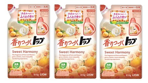 商品紹介 ・消臭イオン新配合で、白く洗い上げるだけでなく、汗・皮脂のイヤなニオイまでスッキリ! ・さらに独自の香りつづくメカニズムで、洗いたてのピュアな香り、長続き。 ・だから使うたび、着るたび、ここちよい香りに包まれて、お洗濯の後もハッピーな気分に。 ・植物生まれの柔軟成分入りで、ふんわり洗いあげます。 Sweet Harmony(スウィートハーモニー)は天然フルーツオイル配合。スウィートなフルーツ&フラワーの香り。 使用上の注意 ・乳幼児の手の届くところに置かない。・用途外に使わない。・荒れ性の方や、原液で使うときは、炊事用の手袋を使用する。・使用後は手を水でよく洗い、クリームなどで手入れをする。・洗濯機のフタなどのプラスチック部分や床に原液がついた時は、放置すると傷むことがあるのですぐに水で充分ふきとる。 応急処置 ・目に入ったとき、はこすらずすぐに水で充分洗い流す。・飲み込んだときは、すぐに水又は牛乳を飲ませる。・異常があるときは、商品を持参し医師に相談する。