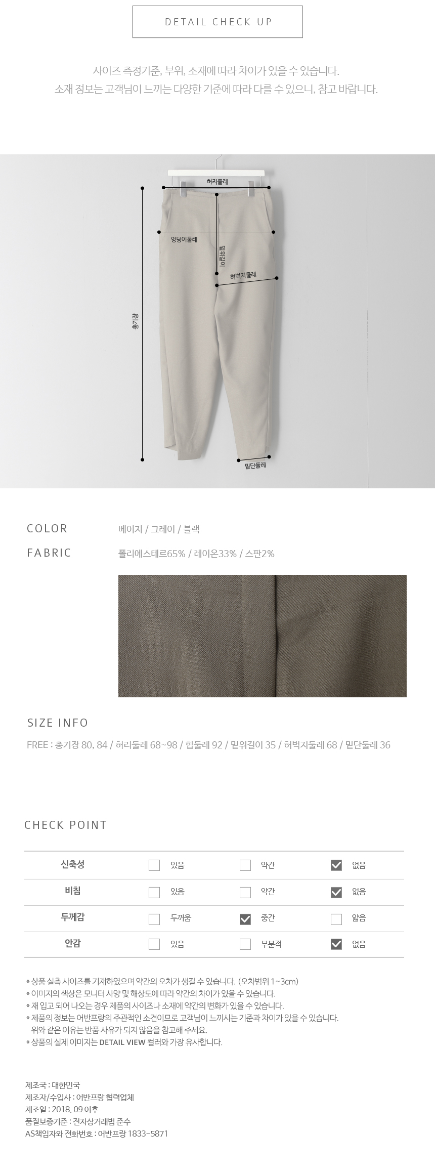 뒷허리는 밴딩으로 사이즈에 크게 구애받지 않고