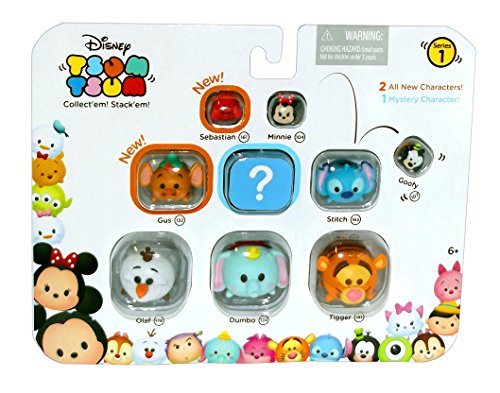 -. Feature : Disney Tsum Tsum Series 1 Sebastian, Minnie, Goofy, Gus, Mystery Character, Stitch, Olaf, Dumbo, Tigger 1" Minifigure 9-Pack / Includes one set per package / Each 9-Pack includes 3 Small, 3 Medium and 3 Large sized Tsum Tsum figures, and a Series 1 collector Guide to track your collection / n each Tsum Tsum 9-Pack, there is 1 mistery hidden figure Includes: Olaf-L/Dumbo-L/Tigger-L/Gus-M/Mistery-M/Stitch-M/Sebastian-S/Minnie-S/Goofy-S / Recommended for ages 6+