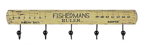Creative Co-Op Wood Fisherman's Ruler Wall Decor with Five Hooks