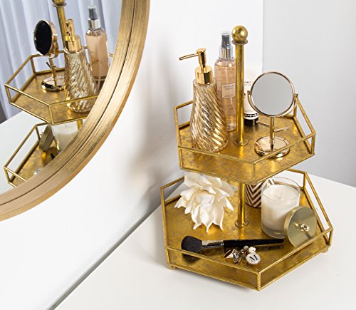 Kate and Laurel Felicia 2 Tiered Metal Decorative Accent Tray, Gold