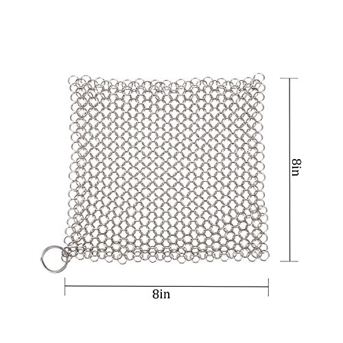 Multiple Use - This Chainmail Scrubber is perfekt for cleaning all your cast iron products without stripping away accumulated flavor and seasoning or scratching your pans. Ideal for Cast Iron, Woks, Casseroles, Cookware items like a baking sheet, tea pot, bottles, cookie sheet and even glassware.