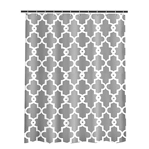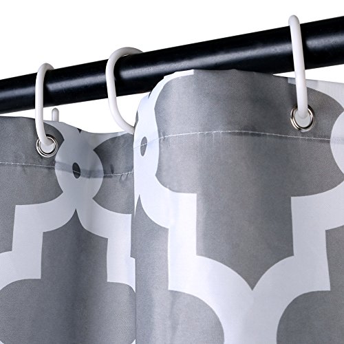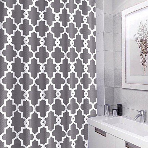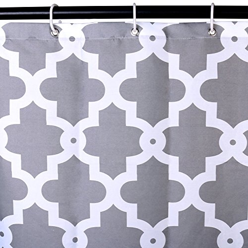 ToHa Grey White Shower Curtain Kit with Hooks, Made of Machine Washable Mildew Resistant Waterproof Polyester Fabric, Classic Geometric Patterned, 72x72 Inch, Gray