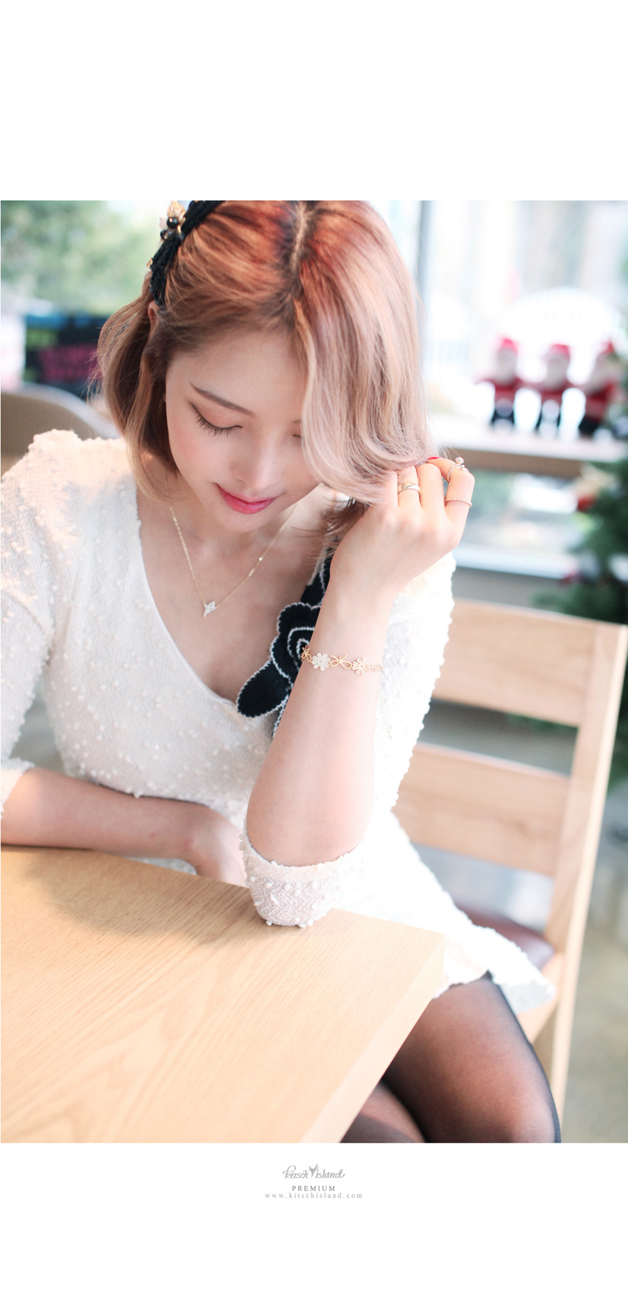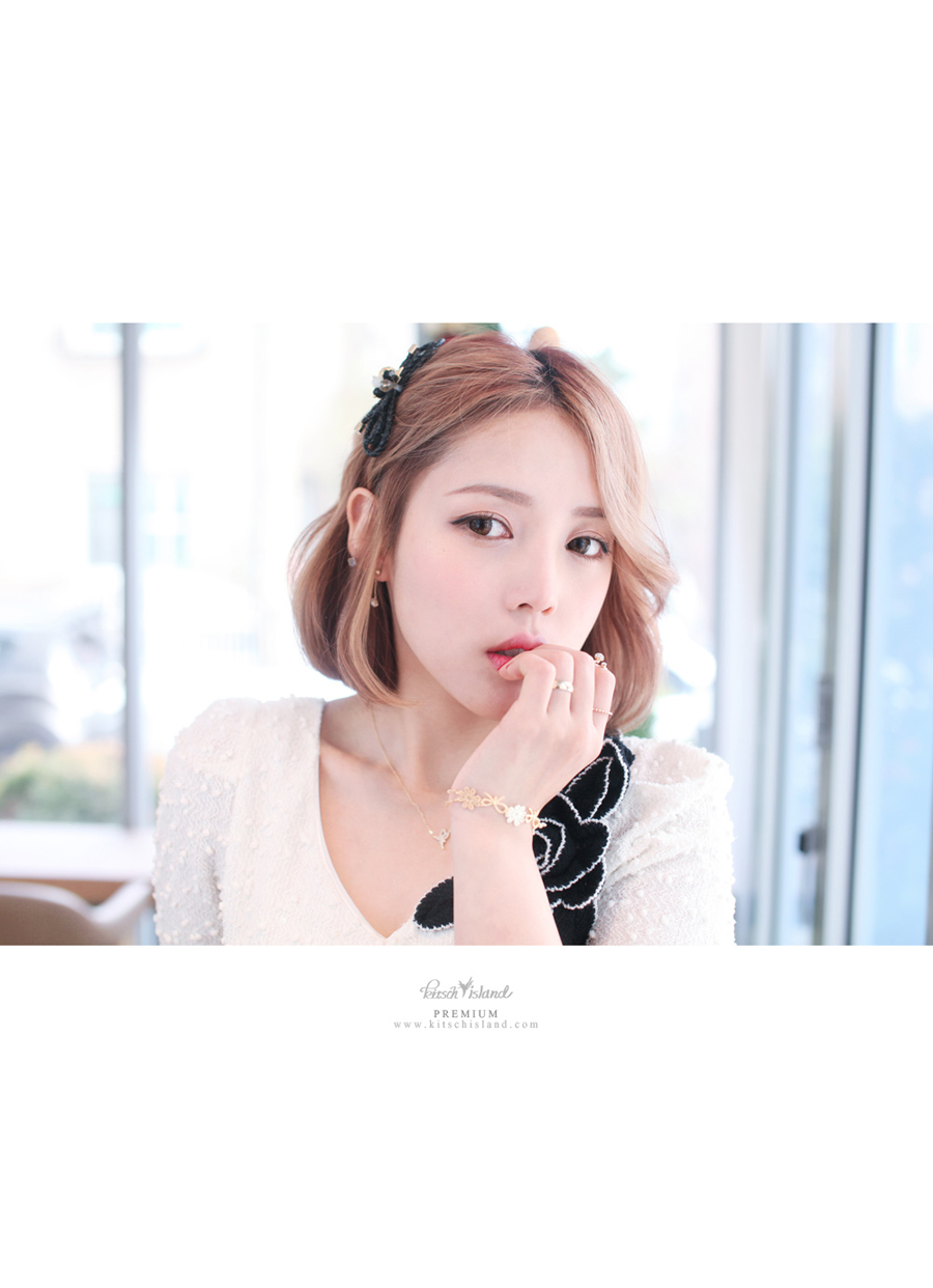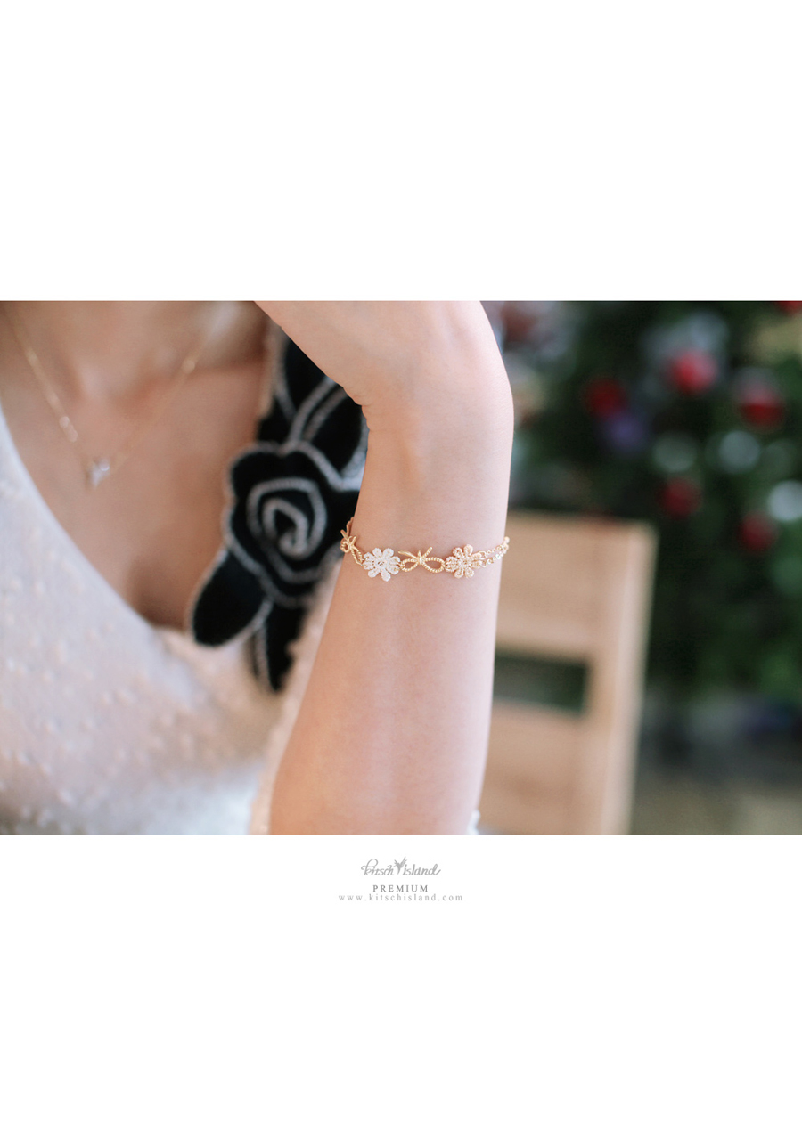 페브릭한 데이지 꽃과 언벨런스한 메탈리본을 엮어 제작한 팔찌입니다.