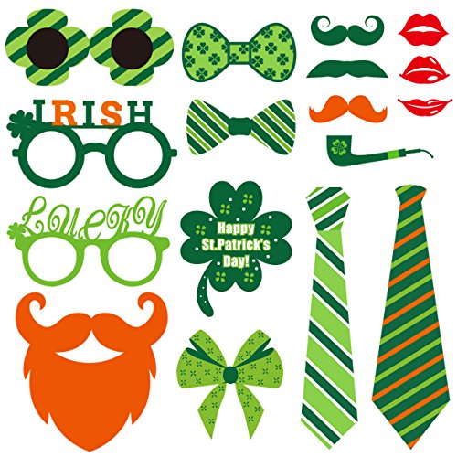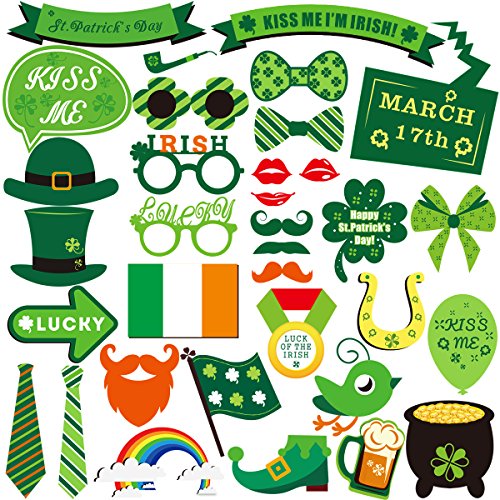 LUOEM St.Patrick's Day Party Supplies Saint Patty's Day Photo Booth Props on a Stick Irish Day Photo Props,Pack of 34