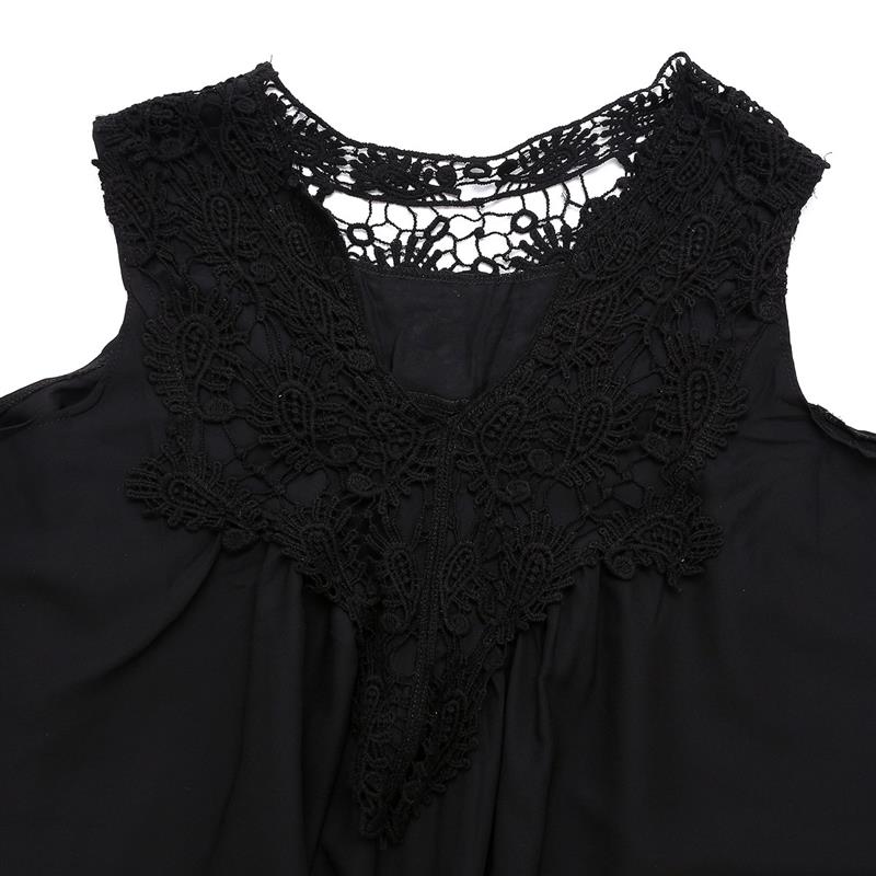 Product Description: Lace, Chiffon, Sleeveless, Solid, V-neck, Loose Top