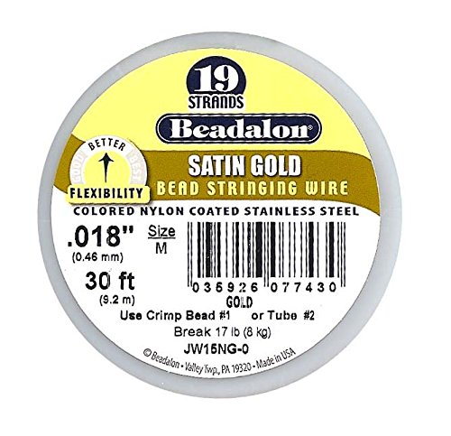 Beadalon 19-Strand Bead Stringing Wire, 0.018-Inch, Satin Gold, 30-Feet