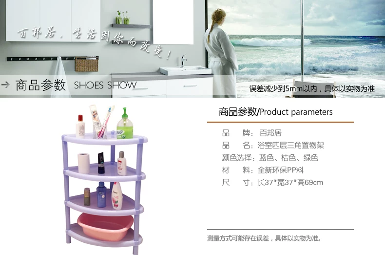 百邦居置物架宿舍神器塑料浴室厨房脸盆架四层三脚架整理收纳角架   百邦居置物架宿舍神器塑料浴室厨房脸盆架四层三脚架整理收纳角架