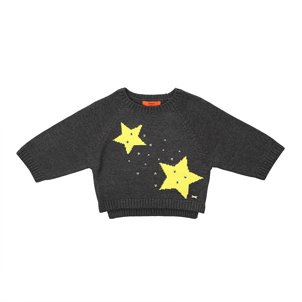 그레이컬러에 엘로우별이 있어 화사한 느낌으로 입을 수있는 니트티셔츠입니다.