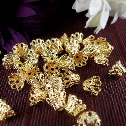Beading Station 100-Piece Filigree Flower Cup Shaped Bead Caps, 7mm, Gold