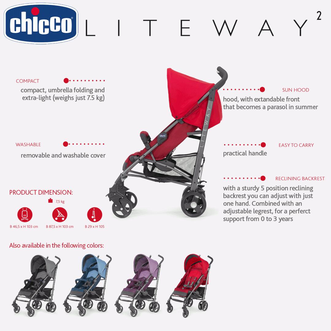 Chicco Liteway 2 Stroller is the ultimate compact stroller for families. Lightweight and foldable, this stroller is ideal for travelling.u0026nbsp;