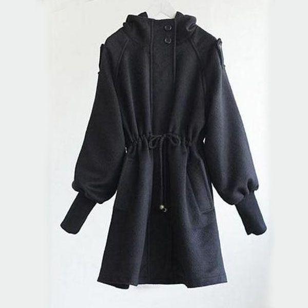 ■商品コード■15000350■サイズ■( M )着丈:78cmバスト:103cm袖丈:69cm( L )着丈:80cmバスト:108cm袖丈:69cm■カラー■ブラックグレー■素材■ウールポリエステル■説明文■長袖フード付きドローストリングコート♪パフ袖が可愛い紐でウエストが調節できるコート♪