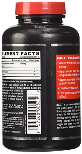 Niox is an advanced nitric oxide boosting muscle and pump formula. With the help of fast-absorbing liquid capsules, NIOX quickly increases nitric oxide levels in the bloodstream. When combined with intense training more blood, nutrients and oxygen are being pushed into the muscles. This generates a bigger and better pump effect. Muscles become fuller and rounder while endurance performance increases. Many weightlifting experts believe that a great pump-effect is quintessential with faster muscle growth. Optimum results are achieved when NIOX is taken daily. To enhance the positive muscle pump effects of training NIOX should be consumed 30 minutes before working out.